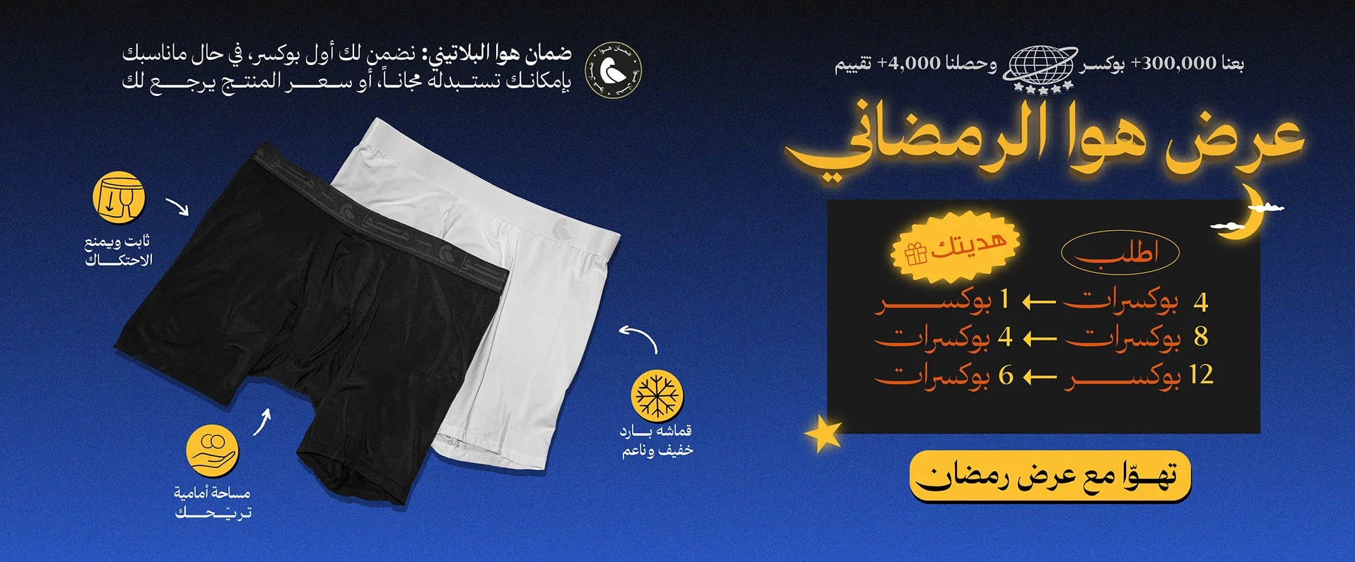 قبل مانسوي بوكسر هوا، جربنا كل شي متاح في السوق، واستوعبنا إن فيه مشاكل واضحة ومختلفة في كل البوكسرات الثانية. عشان كذا صممنا بوكسر هوا بطريقة تفهم جسمك، وقماش يريح جلدك، وثبات يساعدك تتحرك وبدون مايحكحك بين فخوذك. بالضبط ولا غلطة.