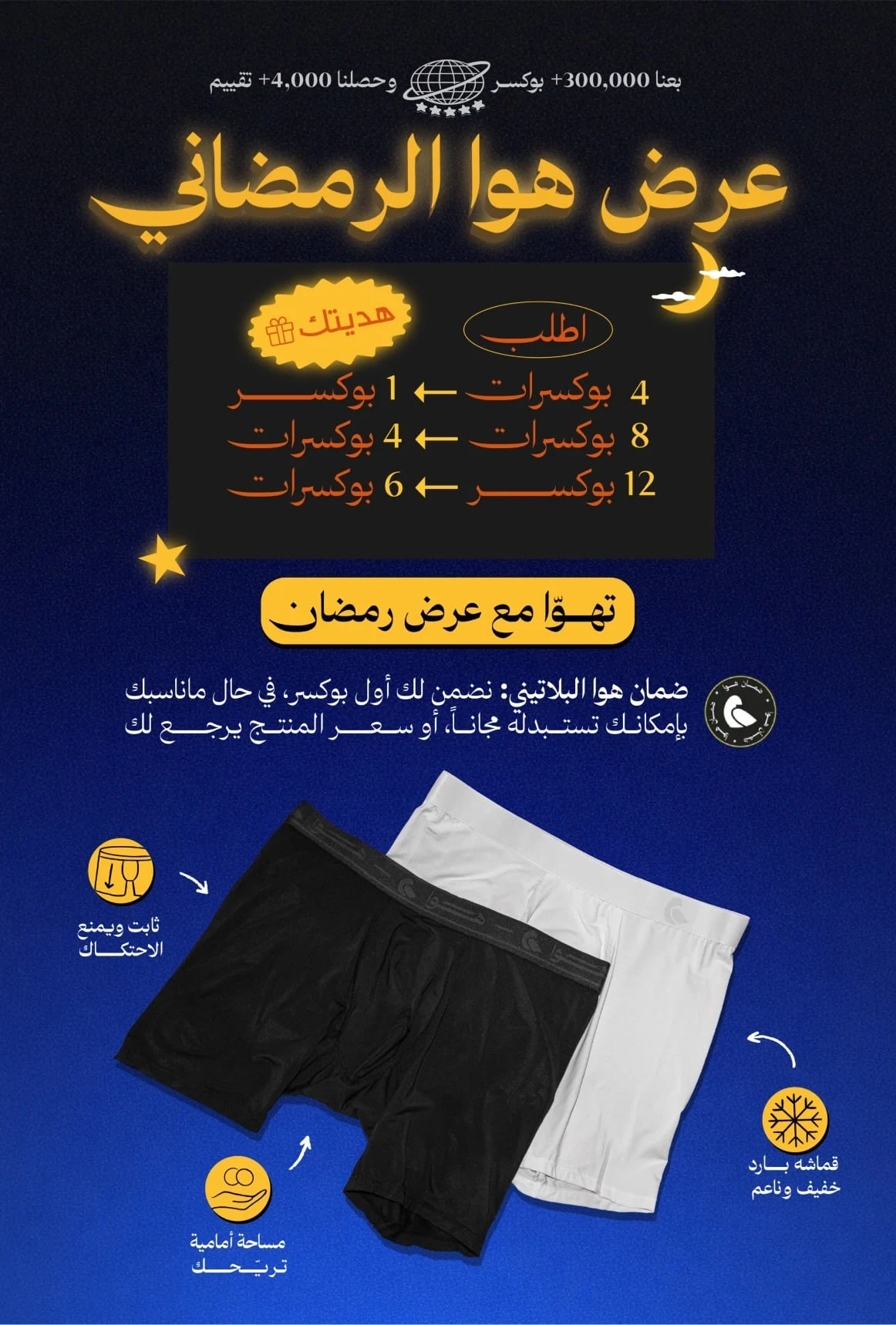 واثقين في منتجنا، أخذ مننا فوق السنة من البحث والتطوير. في حال ماعجبك أول بوكسر. أبد خله عندك وترجع لك فلوسك.